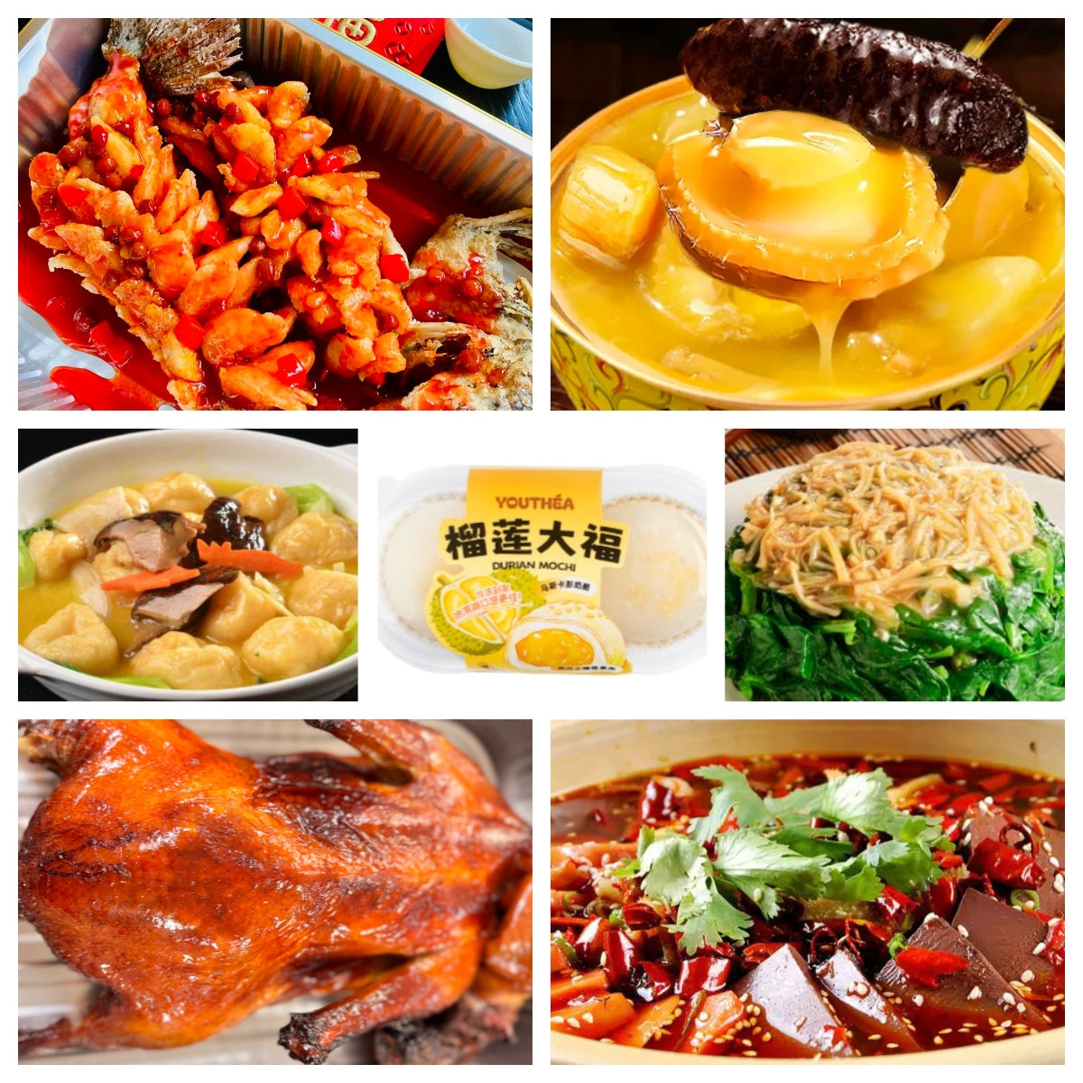 金汤佛跳墙、松鼠鱼、广东烧鸭(整只)、🌶️毛血旺、三鲜鱼面筋、干贝大豆苗、赠送【榴莲大福】