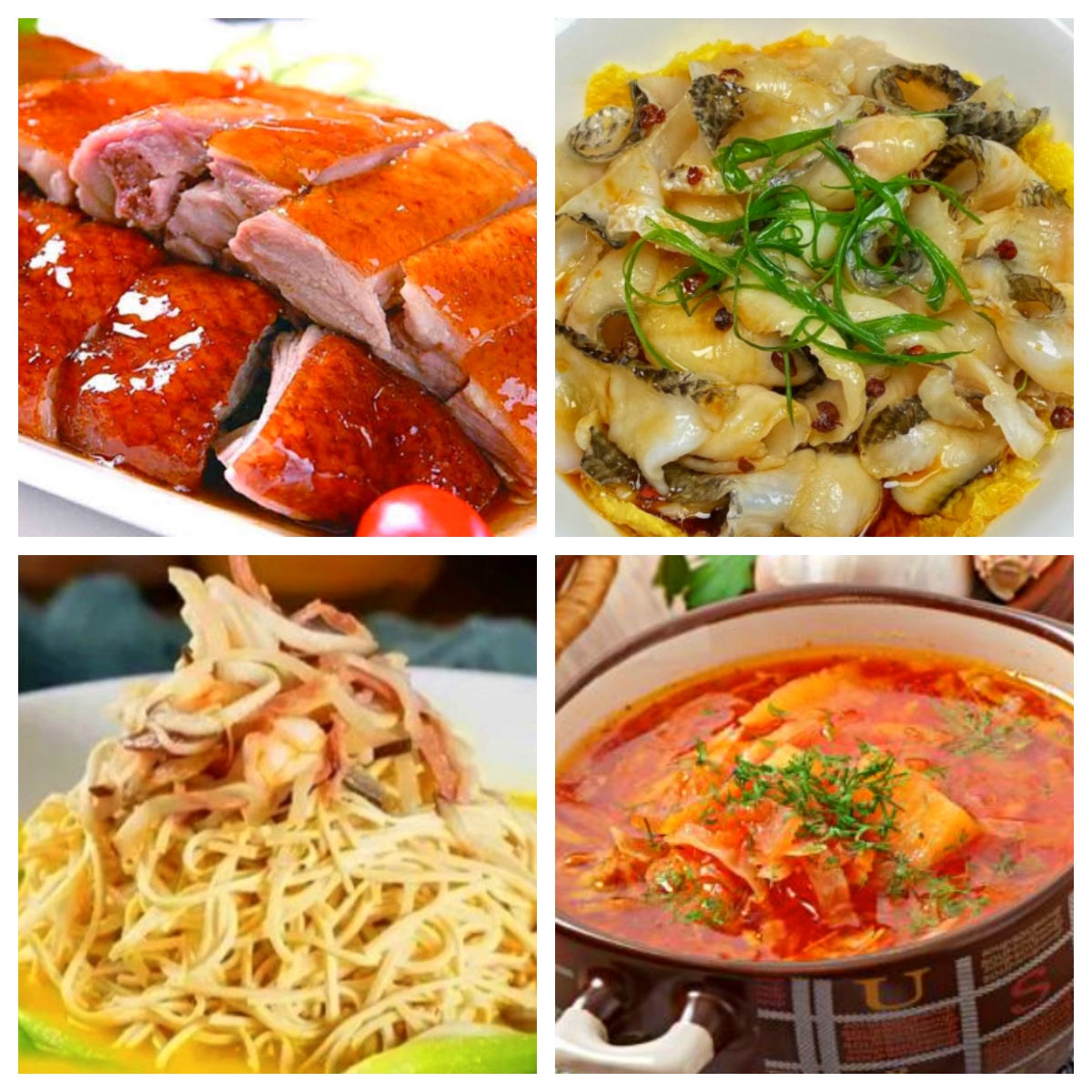 广东烧鸭、葱油鱼片、大煮干丝、罗宋汤